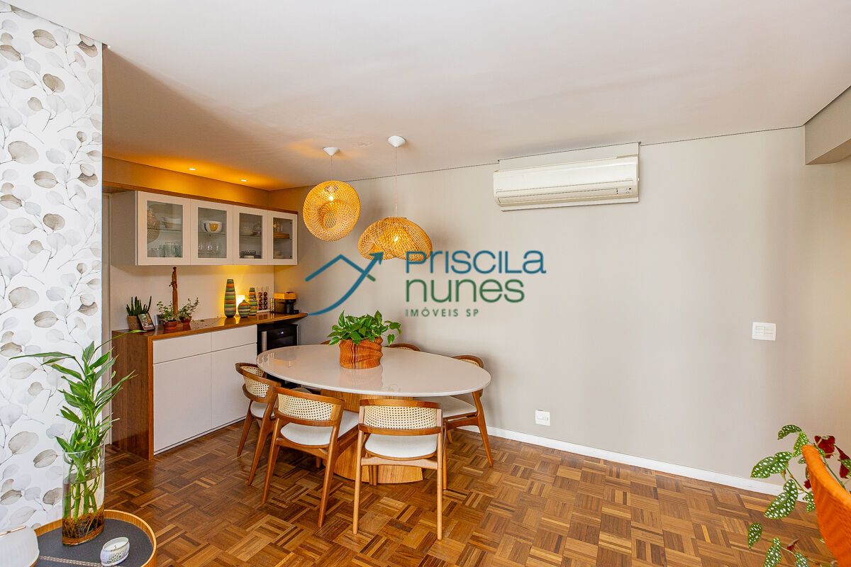 Conceito Aberto: Uma sala ampla e integrada, perfeita para receber e socializar, unindo o estar e o jantar em um único ambiente muito iluminado e arejado, com janelões chão ao teto, dando maior amplitude ao ambiente e entrada de Luz. Piso de madeira em taquinho renovado, o que proporciona aconchego e beleza. Aparador embutido em madeira dando suporte á sala de jantar e espaço para uma adega tamanho (34 garrafas).