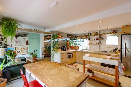 O imóvel passou por uma reforma que proporcionou ventilação cruzada entre as salas e a cozinha, além de garantir a incidência de sol tanto pela manhã quanto à tarde. Isso cria um ambiente onde todos adoram viver, e as plantas são nossas melhores testemunhas desse conforto.