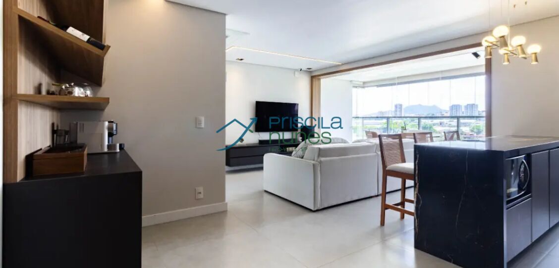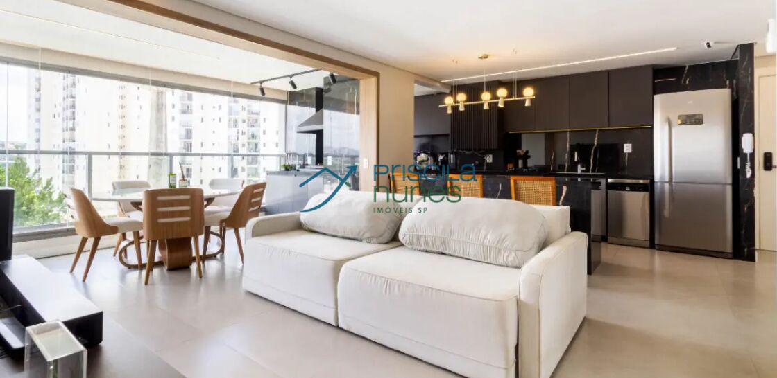 O apartamento possui área de serviços, cozinha e varanda gourmet integradas ao living, lavabo, 02 suítes com banheiros. Piso porcelanato Portobello na área social e banheiros. Piso laminado nas suítes. Ar condicionados nas salas e suítes. Forro de gesso com iluminação embutida de fitas de Led's e spots. Repleto de moveis planejados em todos os ambientes. Possui janela anti ruido, envidraçamento com persianas telas solares nas varanda gourmet. 02 vagas no sub solo demarcadas.