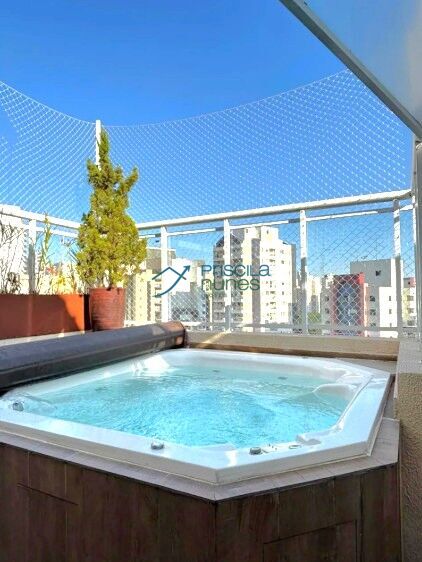 Apto impecável com 163m de área total incluindo 2 vagas e 2 terraços e 120m de área privativa, com 2 dorm 1 suíte 2 banheiros super decorados e novos sala 2 ambientes com cozinha em conceito aberto e balcão em granito, ar condicionado em todos ambientes totalmente mobiliado com móveis eletrodomésticos e armários novos e luxuosos, 2 terraços um com jacuzzi e outro para cultivo de plantas. 2 vagas cobertas, área de lazer completa, gerador, portaria presencial 24h.