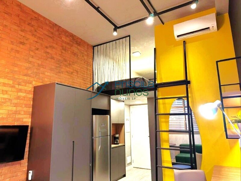 Studio novo, habitado em 2 anos de construção por uma única pessoa solteira. Apartamento com dormitório no mezanino, bem espaçoso e iluminado, com janela grande que recebe o sol da manhã. Condomínio com lazer no rooftop, piscina e academia, ótimo para aproveitar com a família aos domingos, além de uma lavanderia OMO completa. Bem localizado, apenas 2 minutos andando para o metrô Vila Madalena e mais alguns minutos andando para as principais atrações do bairro
