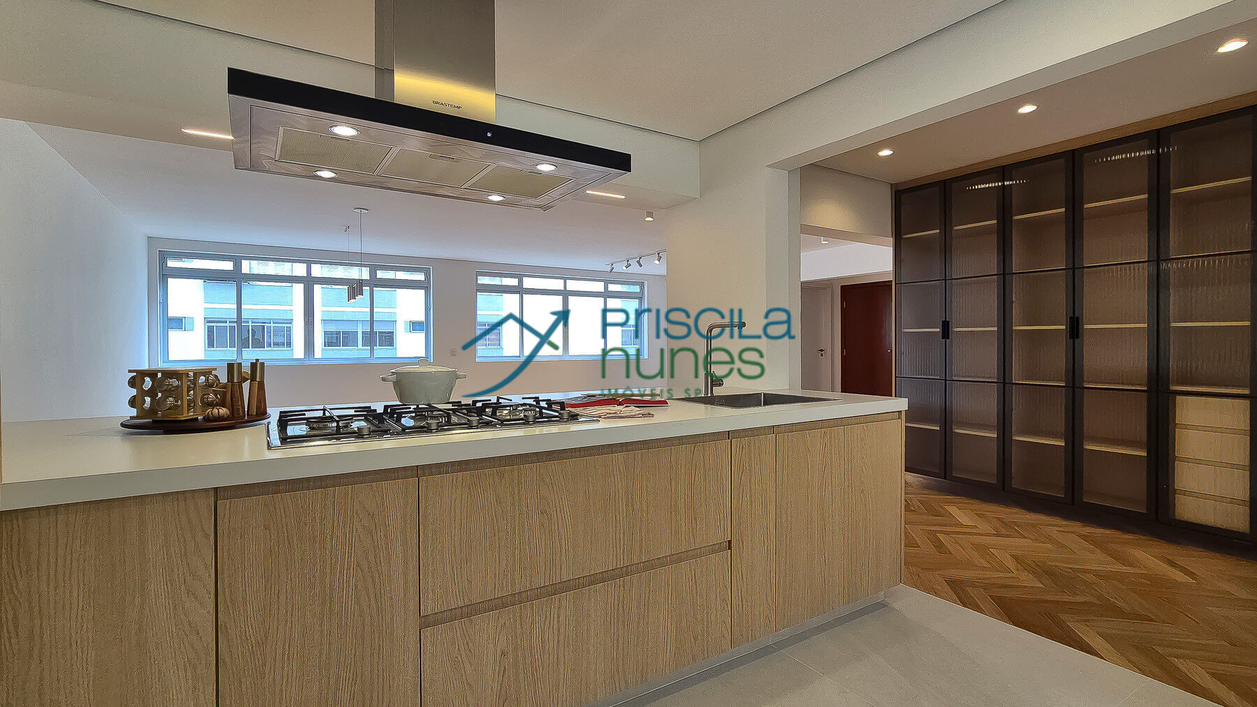 Apartamento onde todos os quartos e a sala têm vista livre e são espaçosos. Na reconfiguração foram feitas 2 suítes (uma master) e integramos por completo a cozinha com a sala.
