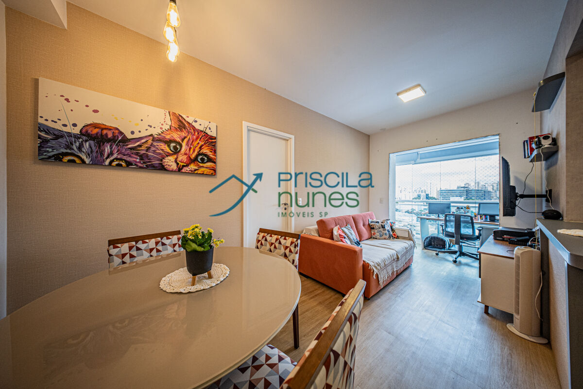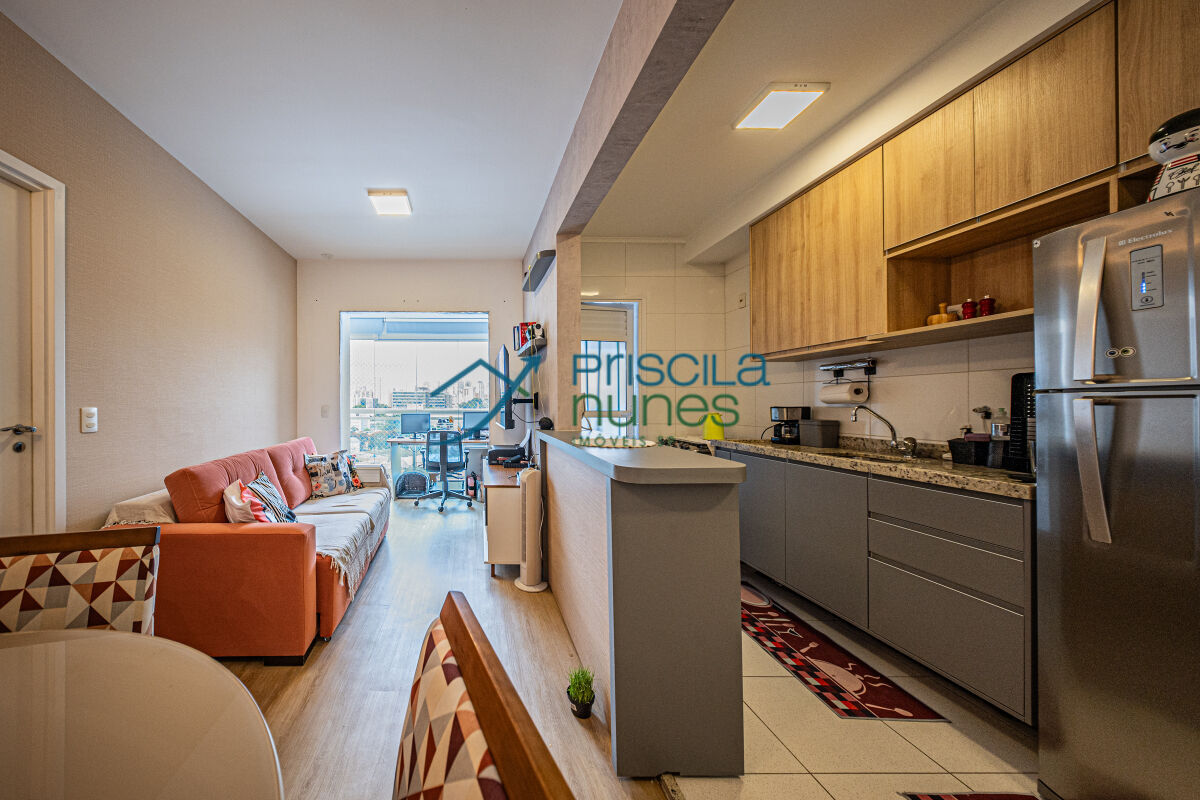 Essa unidade possui 45 m², 1 suíte com ar condicionado, armários, varanda integrada com vidraça, aquecimento a gás, cozinha moderna com armários, ambiente aberto para melhor receber os convidados, muito iluminado e ventilado, vista livre na sacada, fechadura digital, piso laminado madeira e porcelanato na área molhada.