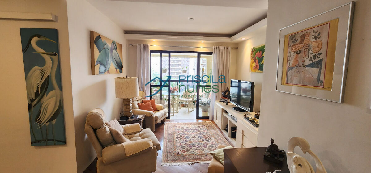 Este apartamento mobiliado de 116 m² reúne espaço, luz e acabamentos que fazem diferença no dia a dia. O living para dois ambientes se integra à varanda e ganha ainda mais presença com o piso de madeira maciça, criando um ambiente acolhedor e elegante para viver e receber.