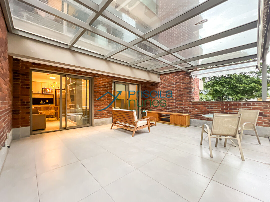 São 72 m² muito bem resolvidos, com uma planta inteligente, integração total dos ambientes, marcenaria sob medida, cozinha funcional e boa entrada de luz. Mas o que muda completamente o jogo está do lado de fora: um garden amplo e coberto, que funciona como extensão do apartamento. Não é decorativo, é utilizável! Dá para montar uma área de estar, receber amigos com conforto e criar um ambiente que foge totalmente da lógica dos studios tradicionais. É nesse ponto que o apartamento deixa de ser apenas prático e passa a ocupar um outro patamar: um lugar que acolhe a vida social.