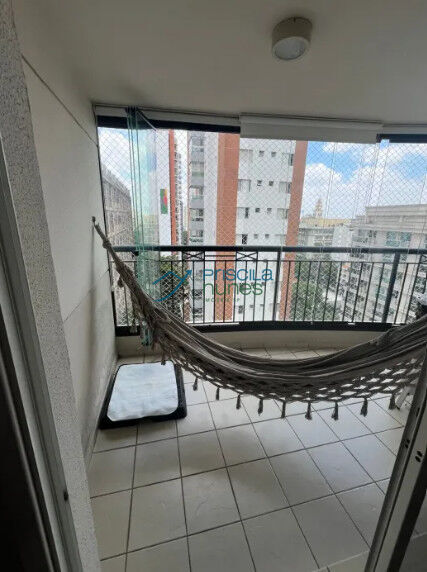 01 Suíte com closet e 01 quarto integrado com a sala com bancada de escritório e estante para livros e decoração. 02 banheiros no total. Cozinha americana, integrada a sala. Sacada fechado com vidro com persiana. Área de serviço. Ar condicionado no quarto. Piso em madeira. Box nos banheiros Armários embutidos nos quartos, sala, banheiro e cozinha. Chuveiro a gás. Máquina lava e seca, fogão, geladeira duas portas, microondas, forno elétrico. Sofá, mesa e cadeiras em sala de jantar Cadeiras de escritório. Persiana em todos os cômodos. Cama casal king tipo tatame. O condomínio oferece portaria 24 horas, circuito interno de câmeras, piscina, espaço gourmet com churrasqueira, academia, playground, salão de festas.