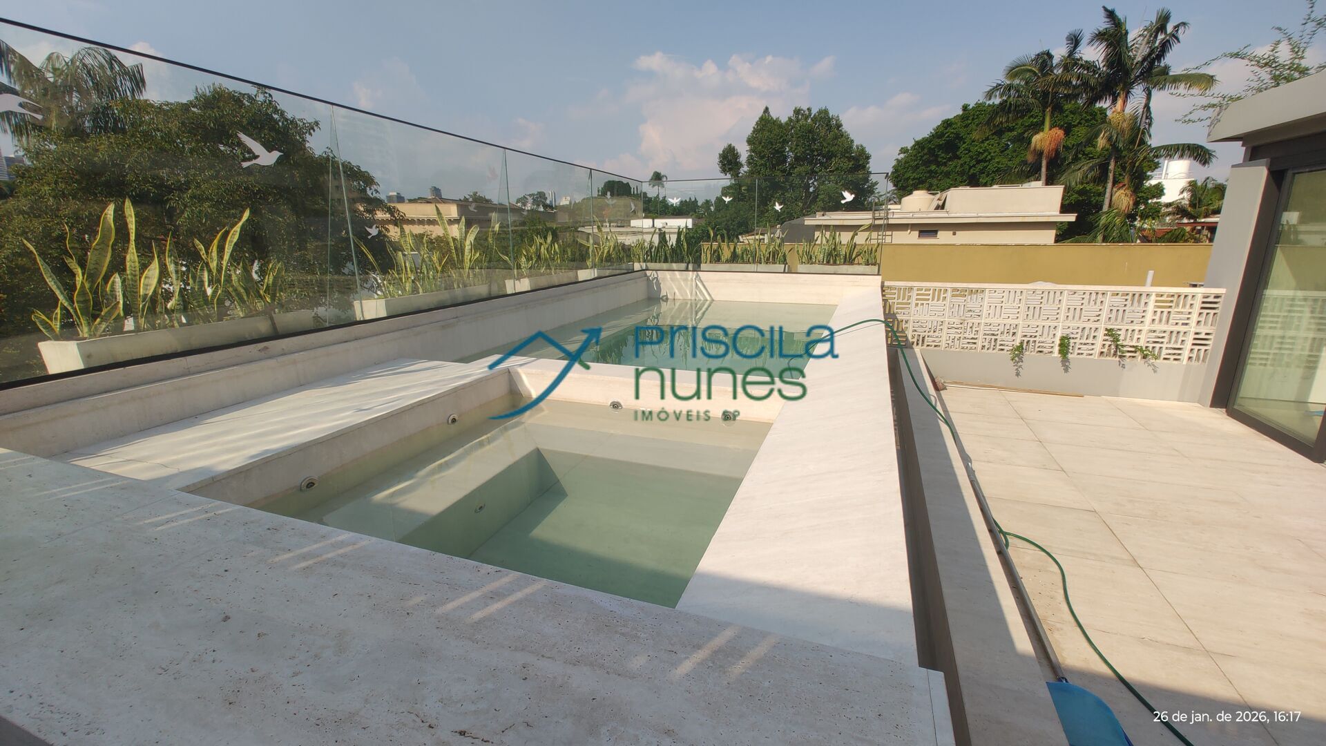 Roof top servido por elevador aonde encontra se a piscina ,hidromassagem e amplo salão com piso em mármore .